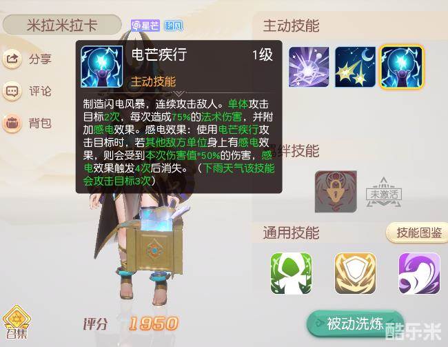 米拉卡的技能比起之前要查很多,并且由于AI机制的问题很多技能也不能得到很好的释放,例如【电芒疾行】如果在不同目标身上释放可以造成额外的伤害效果超群,但由于AI的机制米拉卡不会一直使用电芒疾行这个技能,所以强度也差强人意。所以不太推荐玩家再继续选择她来进行培养了。