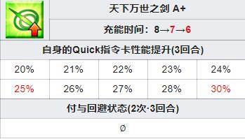 付与自身:Quick指令卡性能提升20%~30%(3回合)