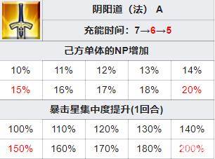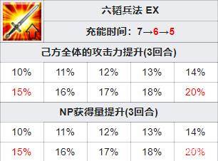 付与己方全体:NP获得量提升10%~20%(3回合)