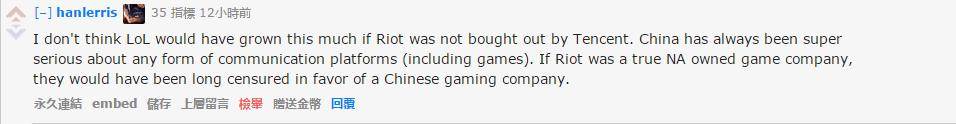 *如果拳头不是被腾讯收购了,我觉得英雄联盟不会成长到今天。一直以来,无论什么形式的沟通平台(包括游戏),中国都是非常重视的。如果拳头是一个纯美国游戏企业,那么他们肯定会一直在一个中国游戏企业面前抬不起头来。