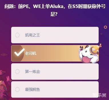 问题:前PE、WE上单Aluka,在S5时期获称外号是?