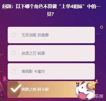 问题:以下哪个角色不算做“上单4姐妹”中的一员?