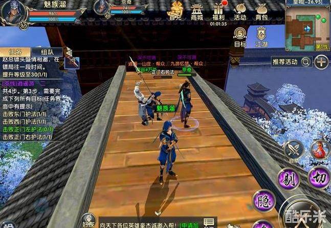 2、正门左右护法分别在左右城门楼上,可先跳到城门旁边矮楼上,然后顺着墙跳到城墙上面,最后再上城门楼,左右城门楼相差距离不远,如果已经到左边城门楼可以直接跳到右边。