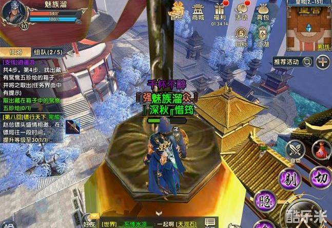 3、收集【猴儿酒】:寻路到【商会】富万海旁,看到三层酒楼,跳到顶层就可以找到猴儿酒(坐标-89,77)。