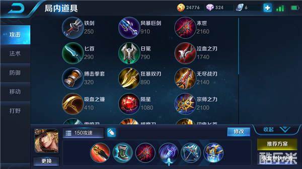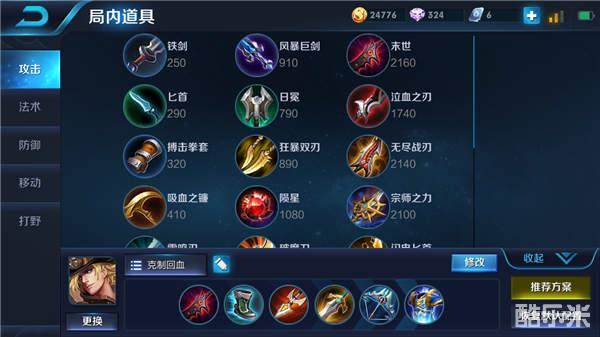 制裁之刃如果出的太快,就打不出伤害,出得太慢,对方的回血类英雄前期就难以限制。这套出装选择第四个大件出制裁之刃,有时候会感觉出得太慢了,我们可以选择这样出装,优先保证75%的额外攻速,因此出完末世和鞋子可以先做一个小件——速击之枪,增加25%的攻速,再做制裁之刃,等做完制裁之刃再把速击之枪合成纯净苍穹,这样既保证了攻速和输出,又可以较早把制裁之刃做出来,从而限制敌方回血类英雄。