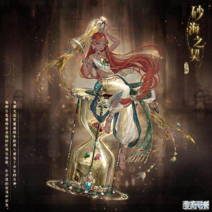 【砂海之契】含默认肤色及深色肤色的特殊姿势,全新妆容“幽静微光”、“皎净流光”,精美可移动摆件“翻覆琳琅”、“珠砂涌流”。深色皮肤部件“欲之秘影”可前往皮肤赠礼活动免费获取。