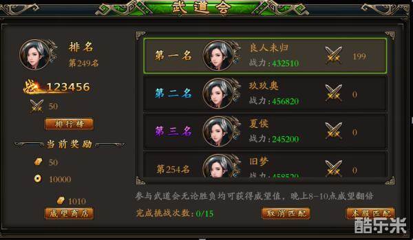 4、按照威望排名发放奖励,前三名除了金钱和修为外还有专属的称号
