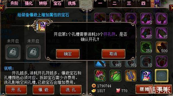 不同品质的装备,拥有不同的上限孔数。所有装备都不会获得天然宝石孔。即,宝石孔必须自己打孔,打孔消耗开孔符。