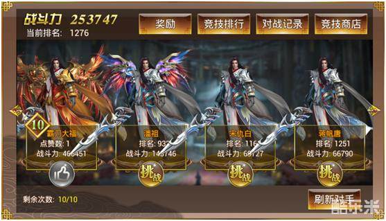 5、避免玩家随机到的对手战力均高于自己,特设定每日可刷新对手,刷新后将重新随机对手。