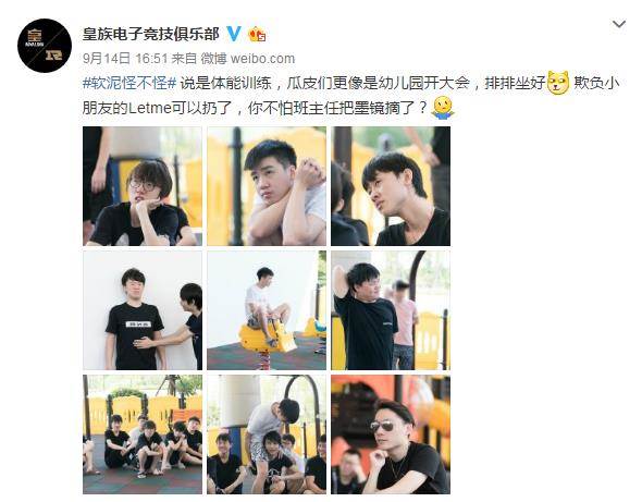 临近S7总决赛,LPL出战的三支战队正在武汉集训,昨天皇族俱乐部微博晒体能训练时的照片。