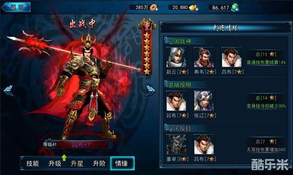 武将可以进行升星,升星需要消耗该武将的将魂碎片,升星可提升武将技能特性,并且武将技能伤害属性加成也会提升。