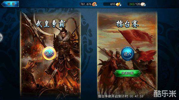 进入演武场,将根据等级开放【武皇争霸】和【擂台赛】功能。