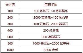 【活动内容】活动期间,每消费1000金币,即可获得100好运值,累计获得好运值可开启奖励宝箱。