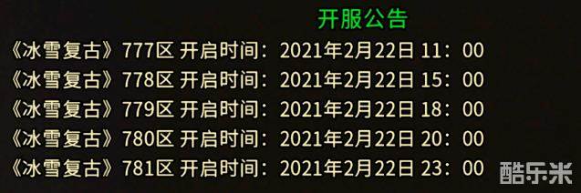 《冰雪复古》781区开启时间:2021年2月22日23:00