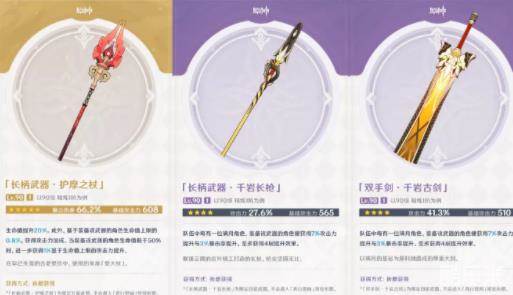 4星千岩系列武器中千岩古剑和千岩长枪的副属性都是提升百分比攻击力,千岩巨剑甚至在升满之后有41.3%的攻击加成,虽然自身的基础面板攻击比较低,但只能说能够缓解一部分圣遗物上百分比攻击的压力;千岩长枪满级提升27.6%的攻击,基础面板攻击会比千岩大剑高一点。