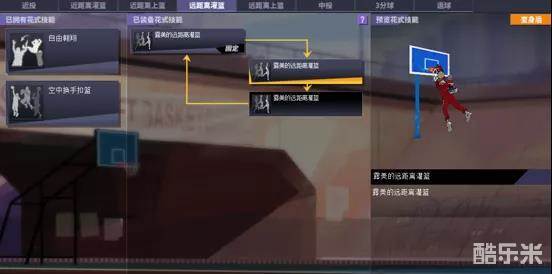 由于C没有PF的自由灌篮,远上和远扣具有随机性,个人认为C不需要任何远上的花式,其他远上花式达不到出其不意的效果,反而适得其反。