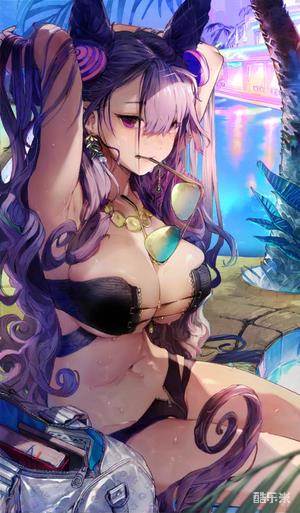 这次介绍的礼装是—夏日阎魔亭,泳装活动的礼装,小麻雀和伽摩都画的很好,不亏是萝莉专业户的画师。不知道礼装卡面和属性的小伙伴,下面我们就来看看卡面和属性吧。