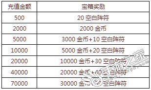 【活动内容】金币奖励满额返还,额外赠送大量空白阵符,天地水火,风雷山泽,奇门阵符,尽收囊中,一切尽在本期月末超值大放送。