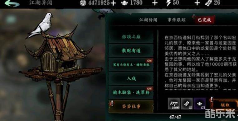 给他:奖励10400经验、55残页、172元宝。
