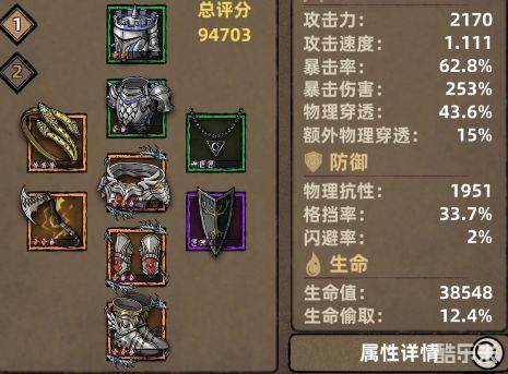 只讲bs关,过不去刷前面关卡拿装备,以下通关2技能我带的都是猎魔技艺。