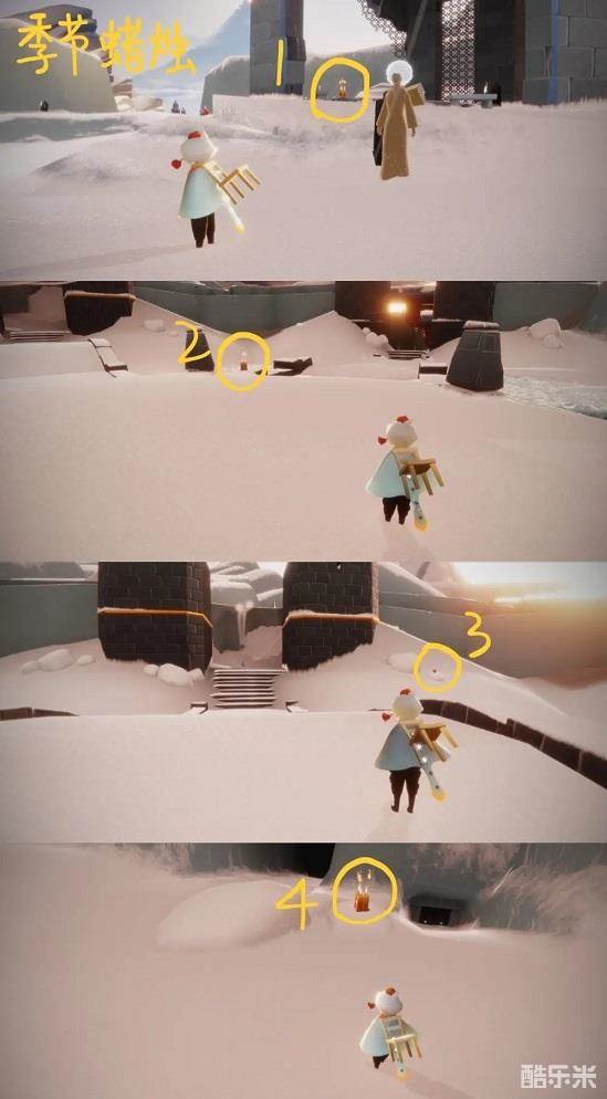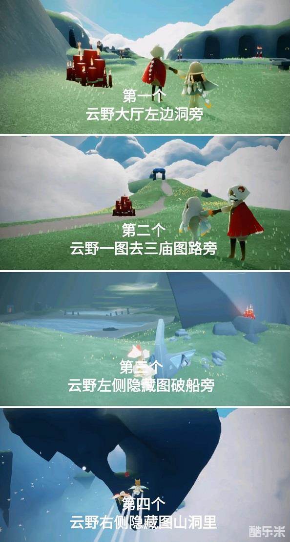 ① 大蜡烛固定位置:云野-圣岛地图3个,预言山谷 2个(位置固定,这里不作图)