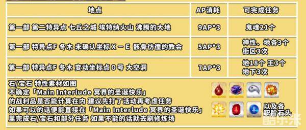 不过AP消耗上还是冬木x-a来刷城市、冬木变动坐标点0号刷地下,分开来进行的花费AP更少。