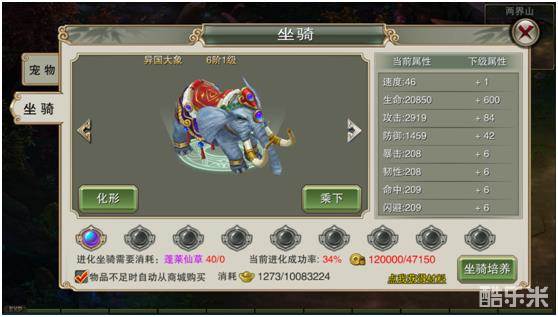 3.升级坐骑消耗蓬莱仙草,坐骑的等级与主角等级无关。