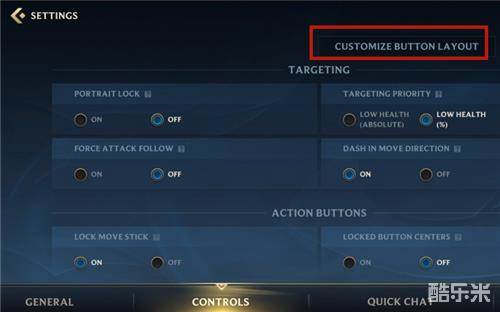 首先来到【控制】设置界面,点击【自定义按键布局】(CUSTOMIZE BUTTON LAYOUT)。