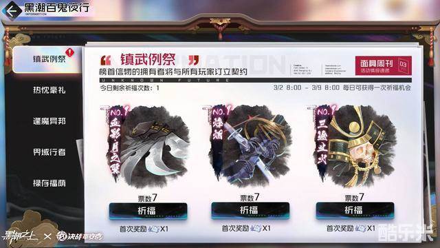 《黑潮之上》X《决战!平安京》联动现已正式定档3月9日!官方的先行活动镇武例祭于今日(3月2日)正式开启!接触者们现在就可以登录《黑潮之上》参与活动给信物祈福,联动开启时,全服都能免费获得一位联动式神!