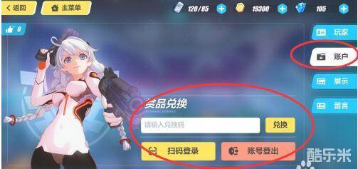 2、选择右侧的【账户】,进入兑换页面