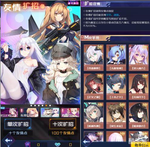 与游戏内的战友相互赠送礼物获取友情点,单日单账号的友情点获取上限为30,100友情点即可在扩招页面畅享“友情十连”!奖品包含SR-MR魂器、SR学员、UR学员,甚至MR学员(又多了一个白嫖MR小姐姐的渠道!)