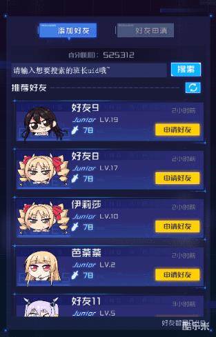 通过输入UID,班长可以搜索自己想要结交的朋友,也可以通过学院智能推荐系统相识目的一致的战斗伙伴