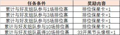 要想力保上分,组队开黑自然是优秀选项。在33开黑节期间,开黑有专属福利加成哦!只要累计与好友组队参与排位赛,即可获得排位保星卡、33开黑节头像框!赶紧呼朋唤友一起来。