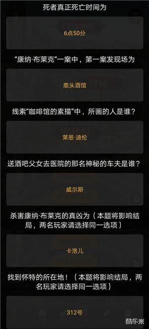 [6点50分]却被无法接受他离开的卡洛儿杀害( 情书1) ( 尸检报告2+往前推1小时被冰冻影响的时间)