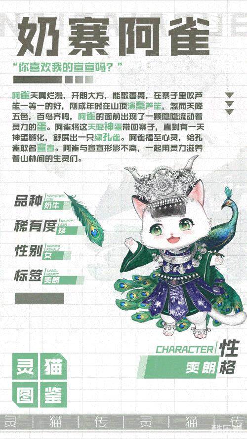 以上就是小编分享的关于《灵猫传》奶寨阿雀技能介绍的全部内容了灵猫传是一款具有华风特色的轻甜剧情手游,唯美的观感为你代入一个写意浪漫的华风世界。你将扮演可盐可甜的尚京少女,在撸猫经营中致富谋生