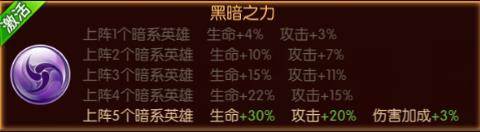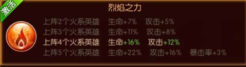 英雄阵型中,不同系别的英雄配搭也会触发额外的属性加成喔~