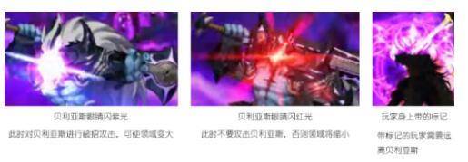 ·贝利亚斯展开领域,随机标记玩家并施展攻击。身上无标记的玩家需要在贝利亚斯眼睛闪烁紫光时对其就行破招攻击,使贝利亚斯的领域不断扩大结束机制。