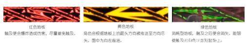 ·黄色地板:角色会根据地板上的箭头方向被推送至方向尽头。