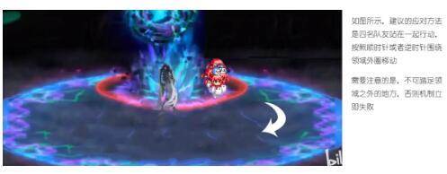 ·机制的要点在于两名玩家相互配合,引导队员站在两条直线相交的点上。一段时间后,交点之上会生成保护罩,可躲避全屏爆炸的伤害。