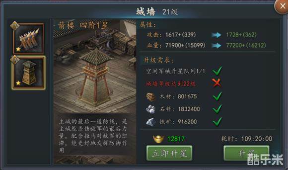 在《三国志2017》中,各位主公可以通过使用一定的资源来对城防器械进行升星。升星拒马可对其进行加固,增加它的血量以及防御,升星箭塔则可增加箭塔的血量以及攻击力。