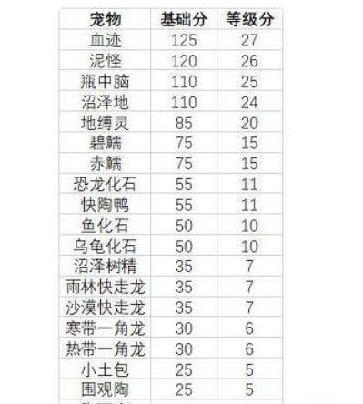 1级的宠物加1次等级分,2级的宠物加2次等级分,以此类推。