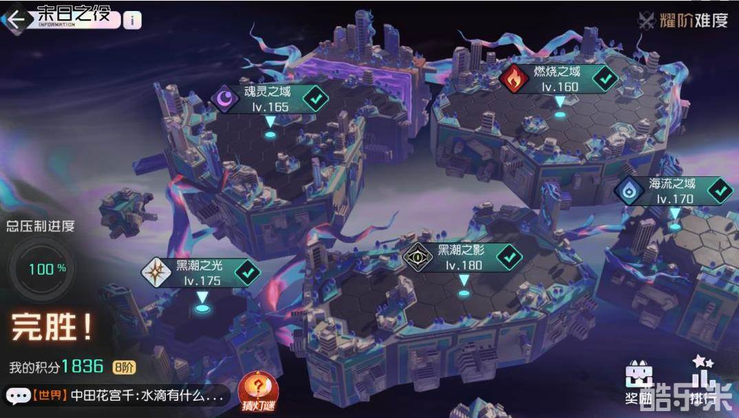末日之役开启后刷新5个不同起源的传送点。进入传送点后,同起源的角色会获得战力加成,每个角色当天只能出战一次。