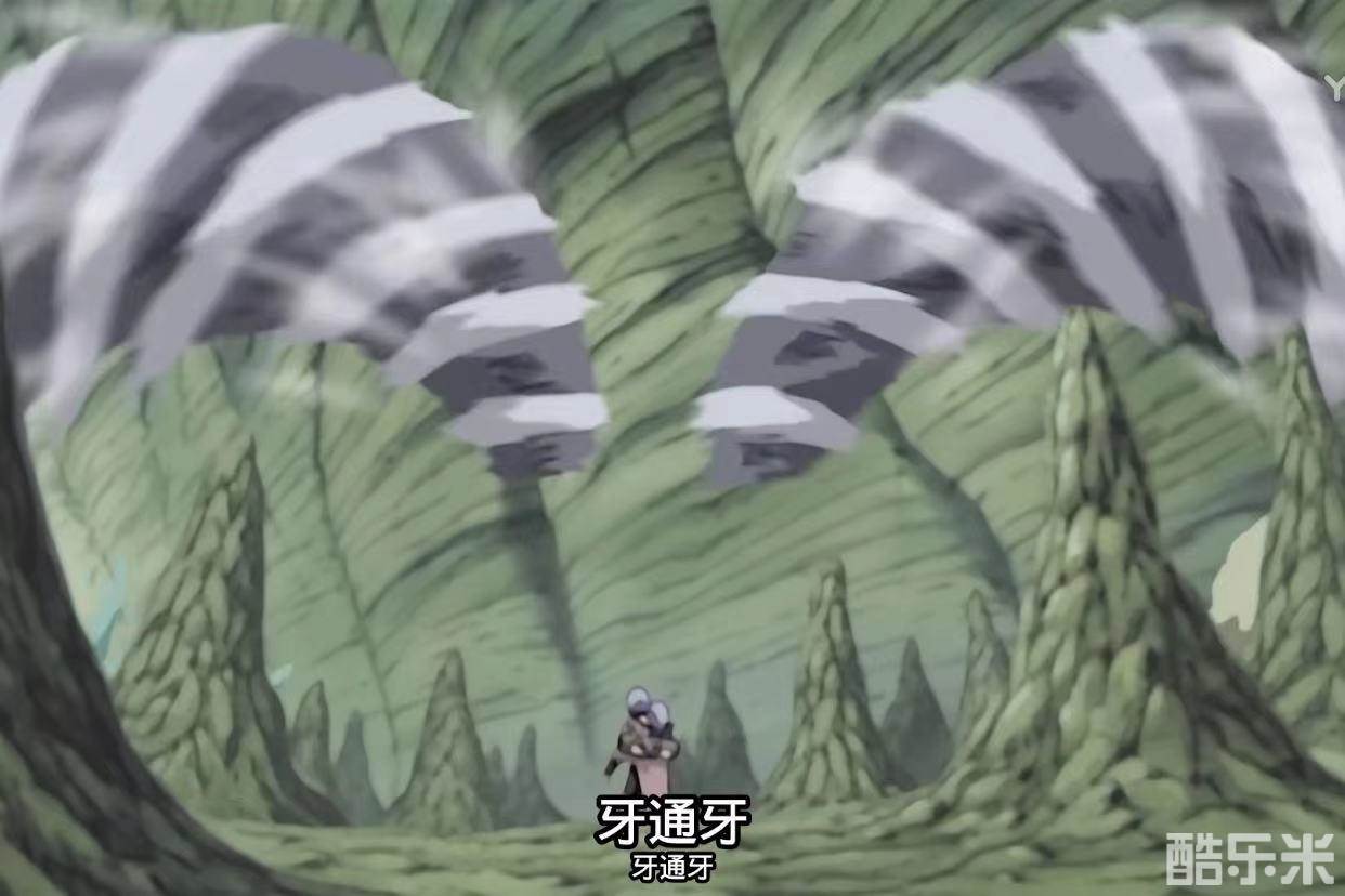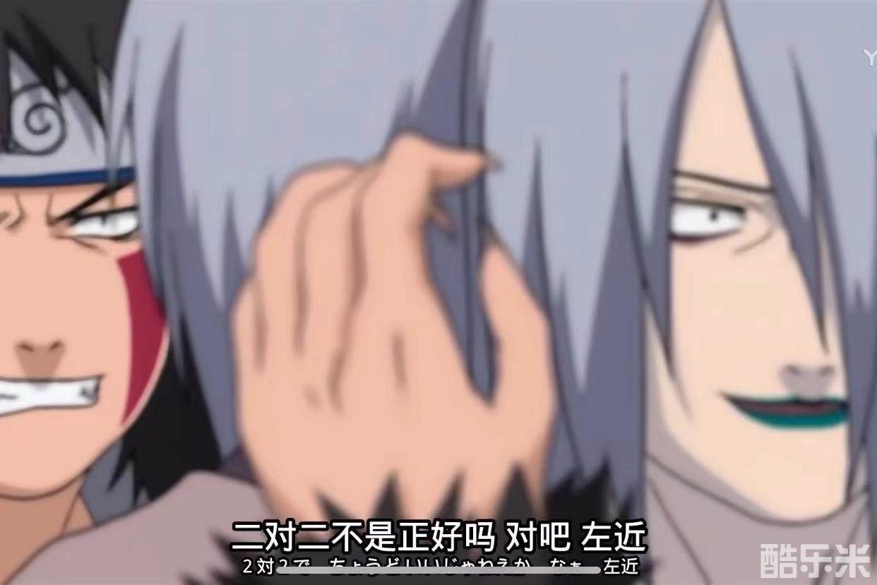 牙和左近掉落悬崖后,在下面也展开了战斗,牙跳到左近背后给了他一记手刀,然而左近啥事没有,自己却被打出了八丈远,牙一脸懵逼,他连左近怎么攻击都没看清,随即他和赤丸一起施展了牙通牙,再一次对左近发起了攻击,然而烟雾过后,左近变成了一个连体人,两个脑袋四只手分别抓住了牙和赤丸,牙尝试用脚反击,然而左近身体里,竟然伸出了一只脚挡住了他,这时左近一拳打飞了赤丸变化的牙,然后回身又对着牙的本体打出一拳,牙撞到身后的石头上还没缓口气,左近又冲上来施展了天马流星拳,牙赶紧歪头躲过了这一拳,只见左近胳膊里又伸出了一只手,死死的锁住了牙的脖子,同时他也亮出了自己身上的咒印,左近解释说身体里这个是他的大哥右近,这个右近比较嗜睡,平时没事就在左近的身体里睡觉,一旦开始战斗就会出来祝他一臂之力,右近的头和四肢,可以从他身体任何一个部位钻出来进行攻击和防御,说完后,左近一个多连脚把牙踢飞了出去。