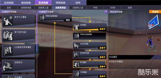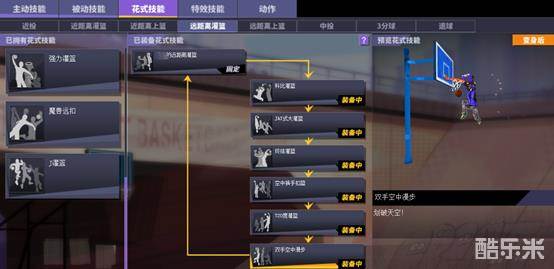 本次主要叙述远距离灌篮部分,因为其他分类花式技能除了近距离上篮可以带个【快速上篮2】以外,其他都可以用你默认技能,无需安装其他。