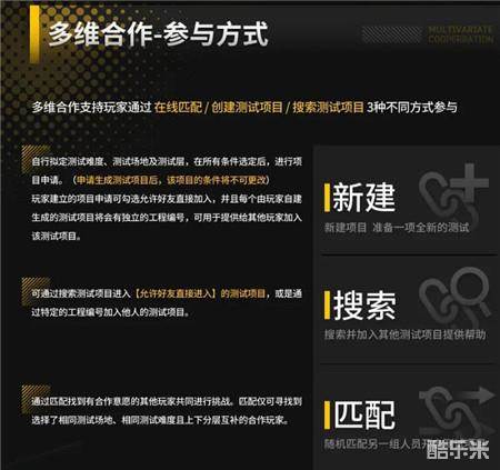 在加入多维合作前,可以通过个人名片入口更换头像。在进入不同的测试场地之前,您需要提前进行编队。不同测试场地的编队独立,但在进入测试项目后仅可以切换编队,不可编辑。需要至少变成一个编队,否则无法进入游戏。测试场地分为上下两层,你负责的区域需要在新建测试项目或者匹配前就先决定好,进入测试项目后无法进行更换。比如你跟你的好友都是选择上层的话,那么你们是不可能一起游戏的。