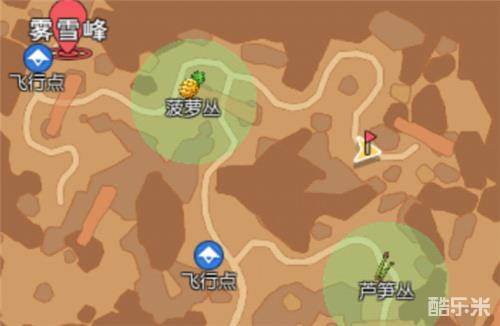 刷新点一:【木灵峡谷】左上方的【菠萝丛】区域刷新,就是地图最上方交叉点,具体位置如下图标记所示。