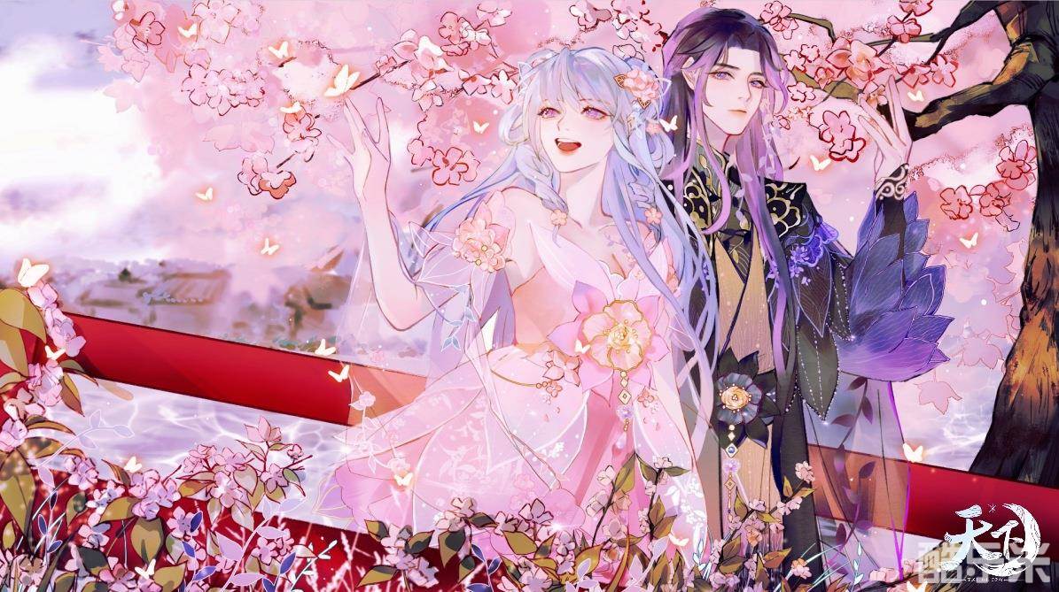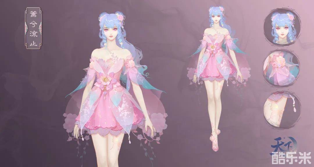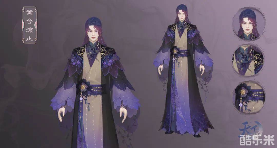 薰兮流止一定是少女的最爱!粉粉嫩嫩的短裙融合了花瓣的设计元素,就像一头扎进了浪漫的花海里。男装更讲究细节和美感,在色彩上融合了蓝紫渐变和香槟金,腰间配以蓝紫色的花朵,肩膀处隽绣出花朵形态的花纹。细腻的波浪形暗纹镌刻周身,精致且增添了几分神秘感