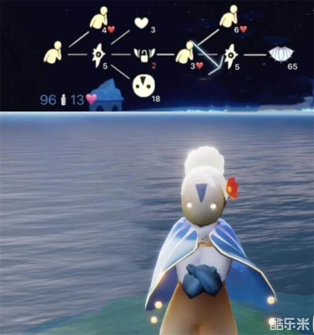 3根蜡烛兑换一个心,开两个魔法节点,合计10根蜡烛,再消耗2根暴风眼红蜡烛,兑换一个永久光之翼,然后直接用6个爱心,把二级背背动作打包带走。
