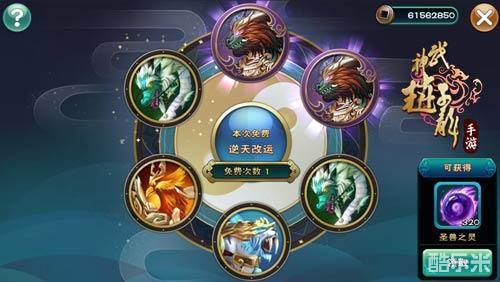 圣兽技能进化会消耗道具“圣兽之灵”,而该材料可以通过卜卦获得。每日可以进行3次卜卦,卜卦后可能出现四圣兽或麒麟圣兽,越多的麒麟圣兽获得的圣兽之灵也越多。可通过逆天改运来重新卜卦,同时会保留已经占卜出的麒麟圣兽。免费的逆天改运次数用完,还可以消耗一定数量的铜钱来获得逆天改运机会,刷新次数越多消耗铜币越大,所以各位小伙伴需要注意见好就收哦。