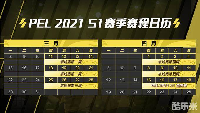 本次PEL和平精英职业联赛2021 S1赛季为期六周,3月11日-4月11日为常规赛,4月15日-4月18日为总决赛。